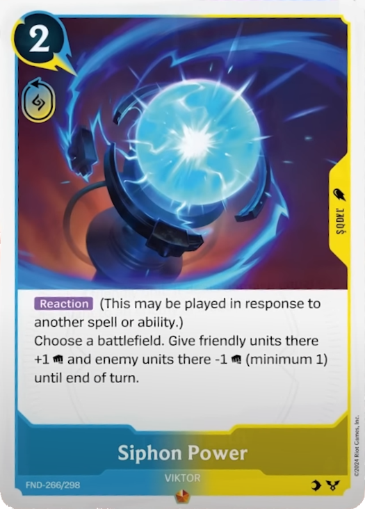 Portions of Reborn Spoilers Cards are unofficial Fan Content permitted under the Riot Games Content Policy. The literal and graphical information presented on this site about League of Legends, including card images, the symbols, and Oracle text, is copyright Riot Games. Reborn Spoilers Cards is not produced by, endorsed by, supported by, or affiliated with Riot Games.